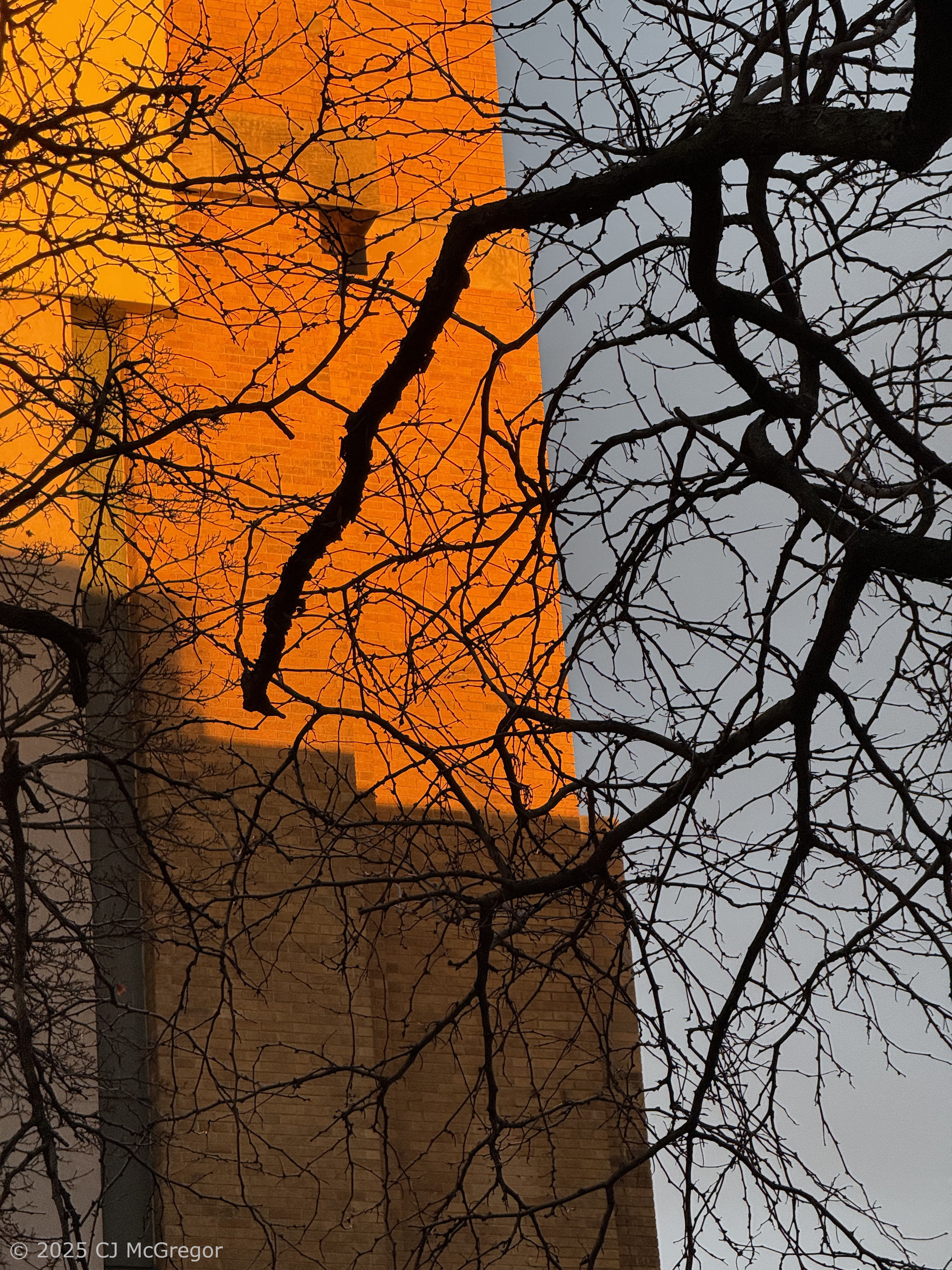 A quick routine walk to the grocery store made me stop in my tracks to take this. The sun was setting, but a tiny sliver of light was illuminating a few buildings, and the setting sun couldn't be seen.